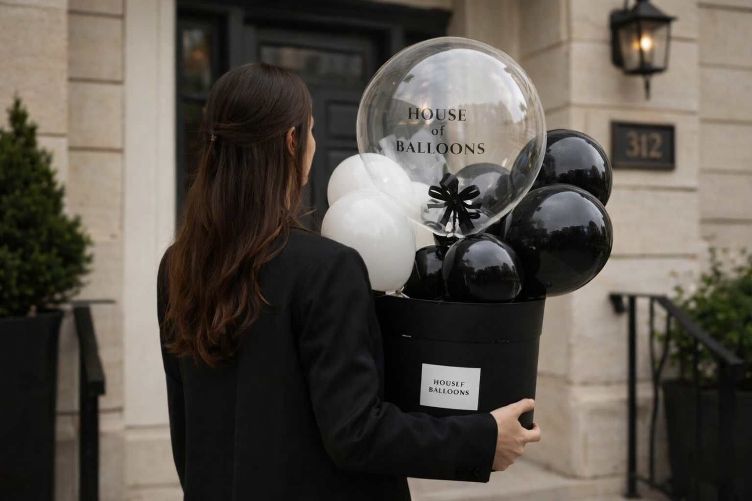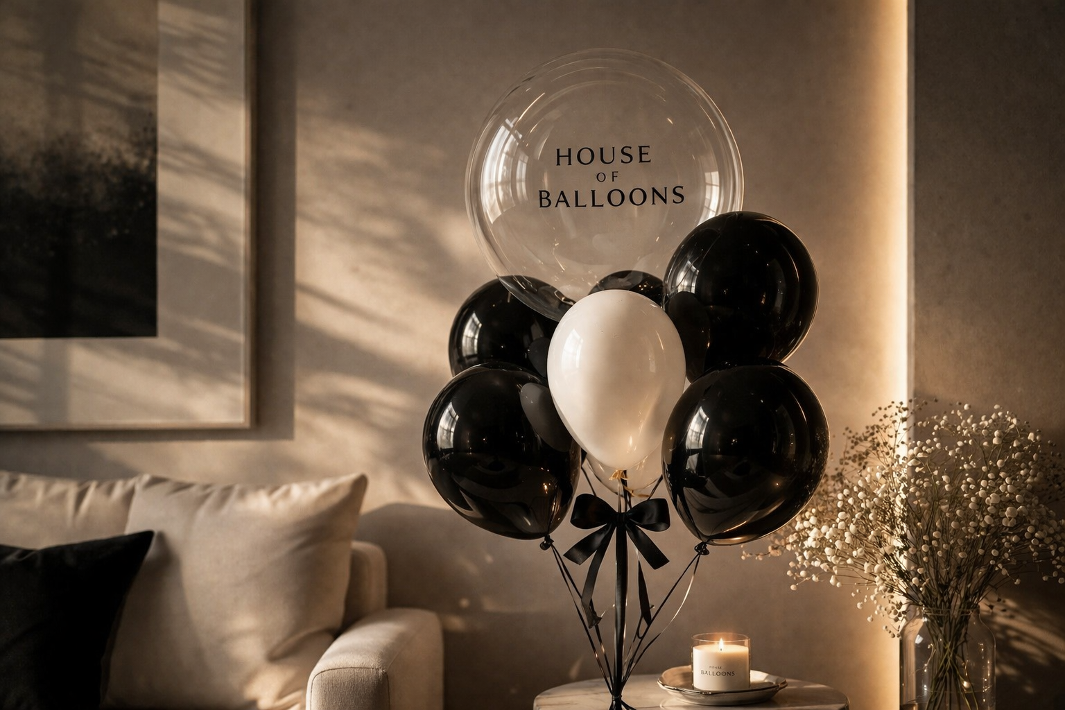 Elegant helium balloon bouquet, professionally styled for any occasion.
